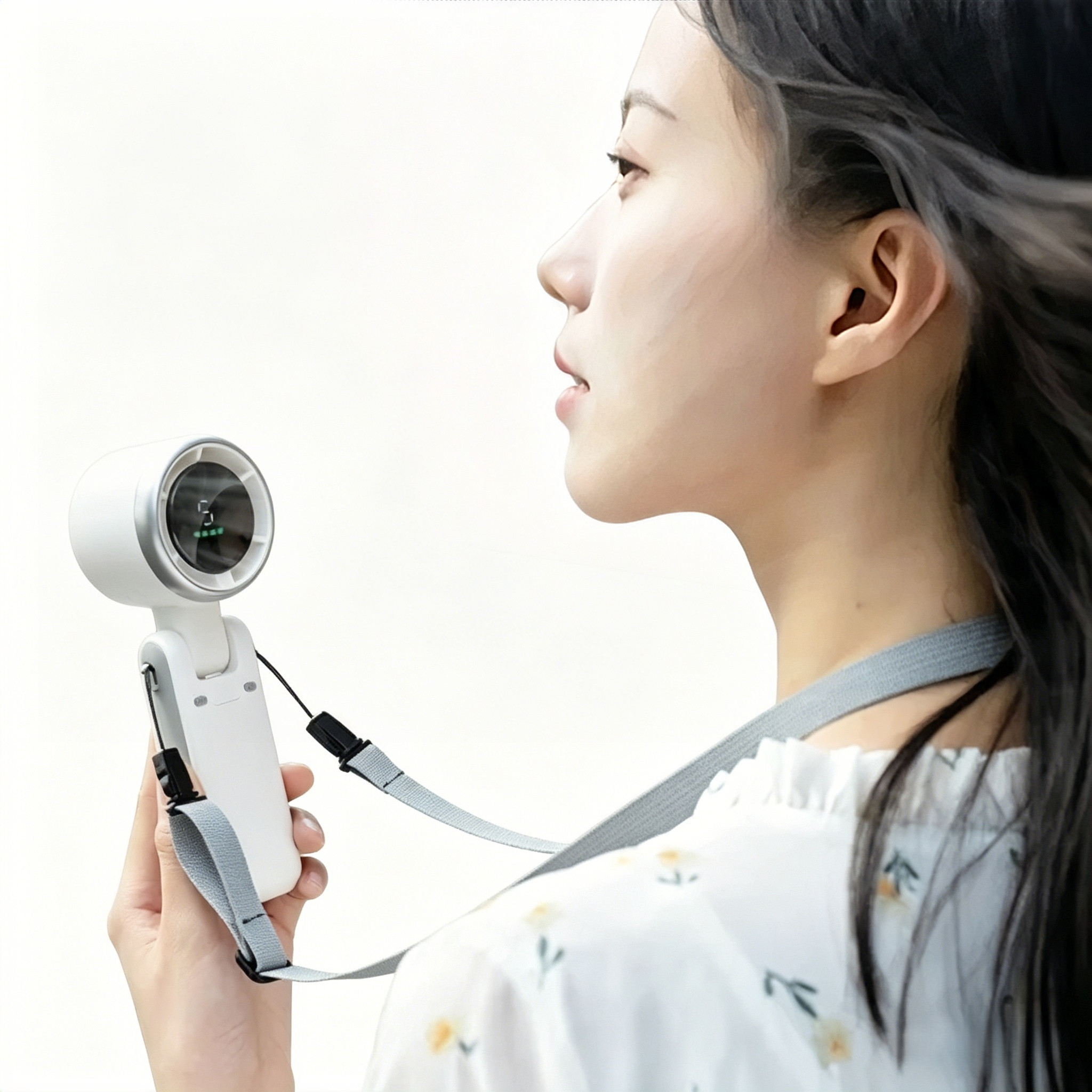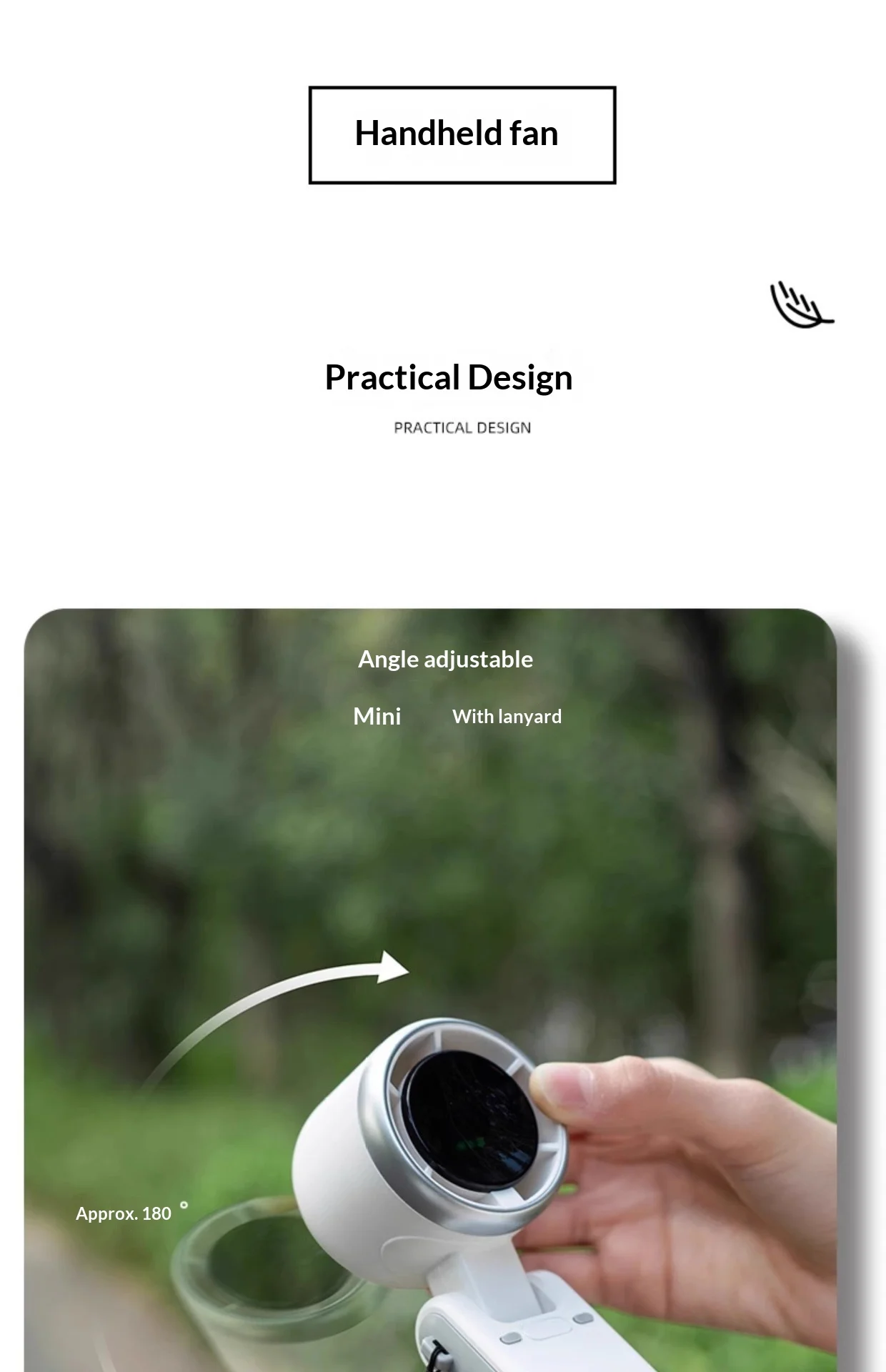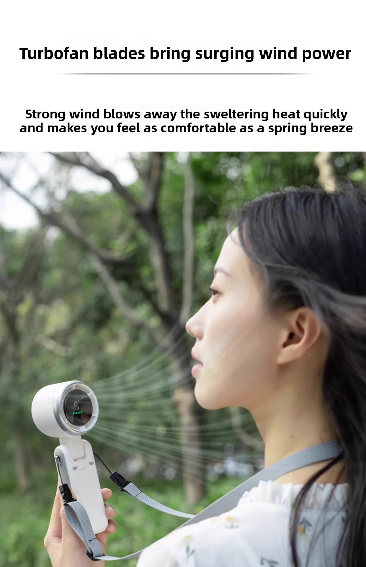 Neck-Hanging Mini Fan: Compact size. versatile use.